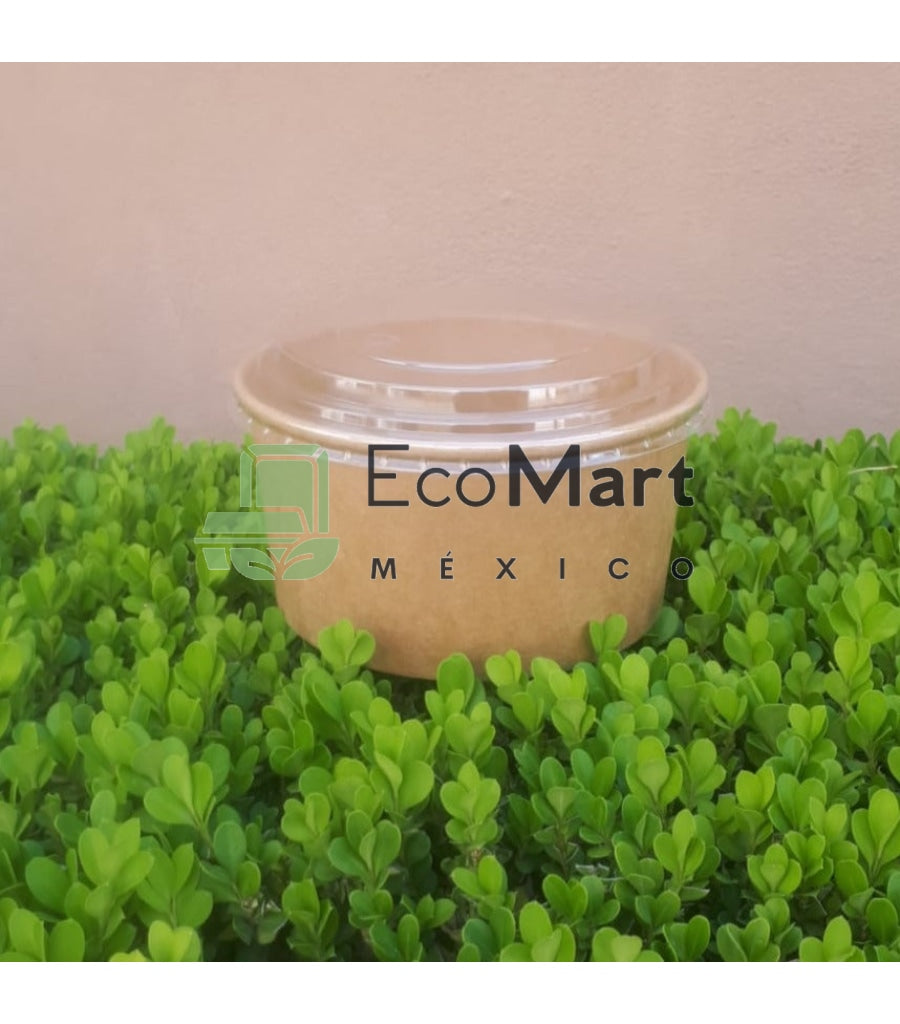 - Bowl cartón kraft desechable biodegradable con tapa reciclable transparente PET.